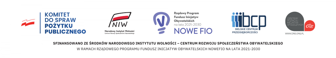 Projekt był realizowany przez Stowarzyszenie Bielskie Centrum Przedsiębiorczości oraz Centrum Rozwoju Inicjatyw Społecznych CRIS ze środków Narodowy Instytut Wolności – Centrum Rozwoju Społeczeństwa Obywatelskiego w ramach Rządowego Programu Fundusz Inicjatyw Obywatelskich #NOWEFIO na lata 2021-2030.